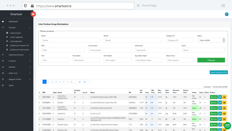 Integrări cu feed-uri de date, gestiune prețuri, stocuri, site-uri web